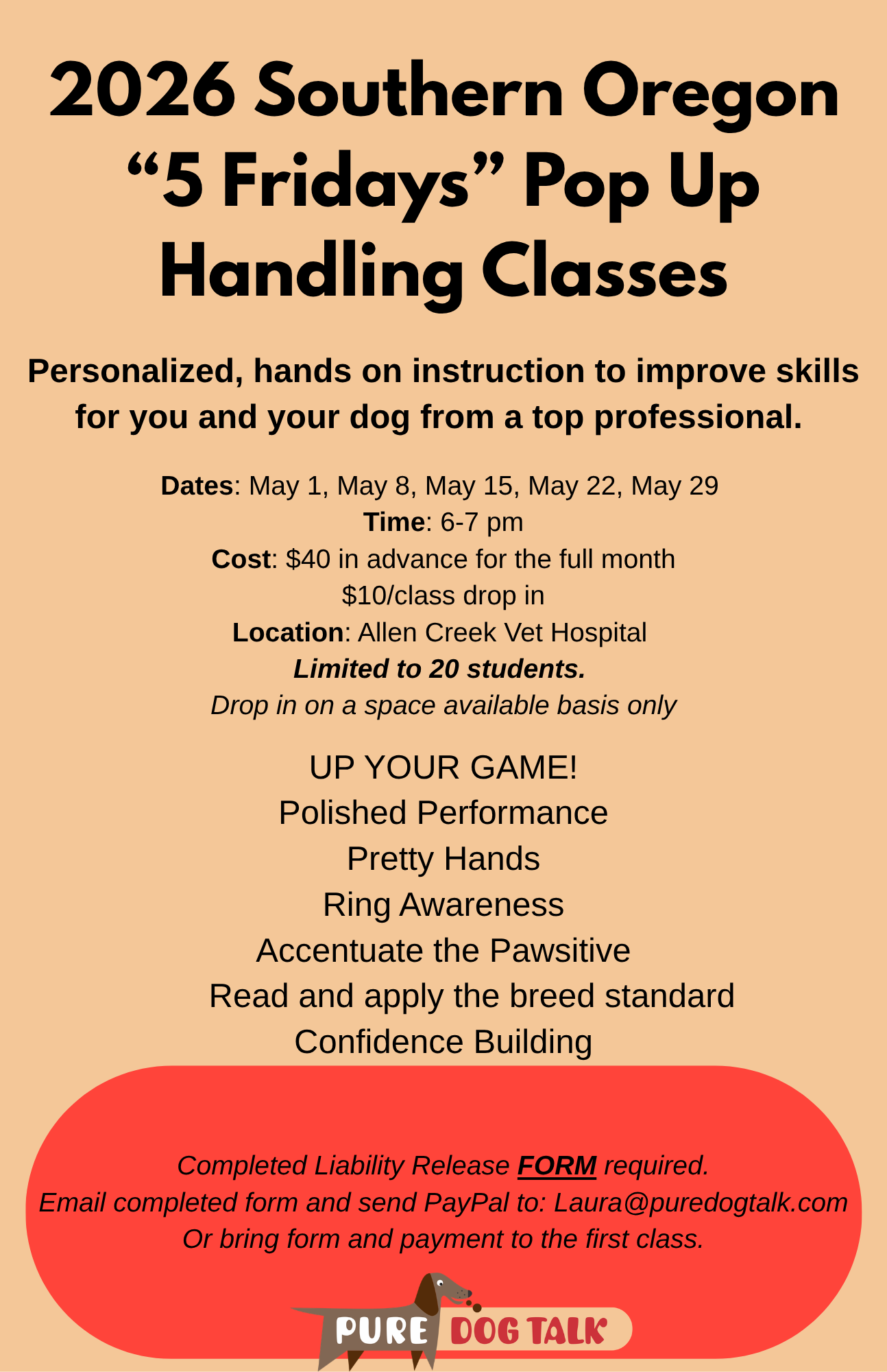 Laura Reeves, Conformation Handler and Judge, is presenting a Handling Class series